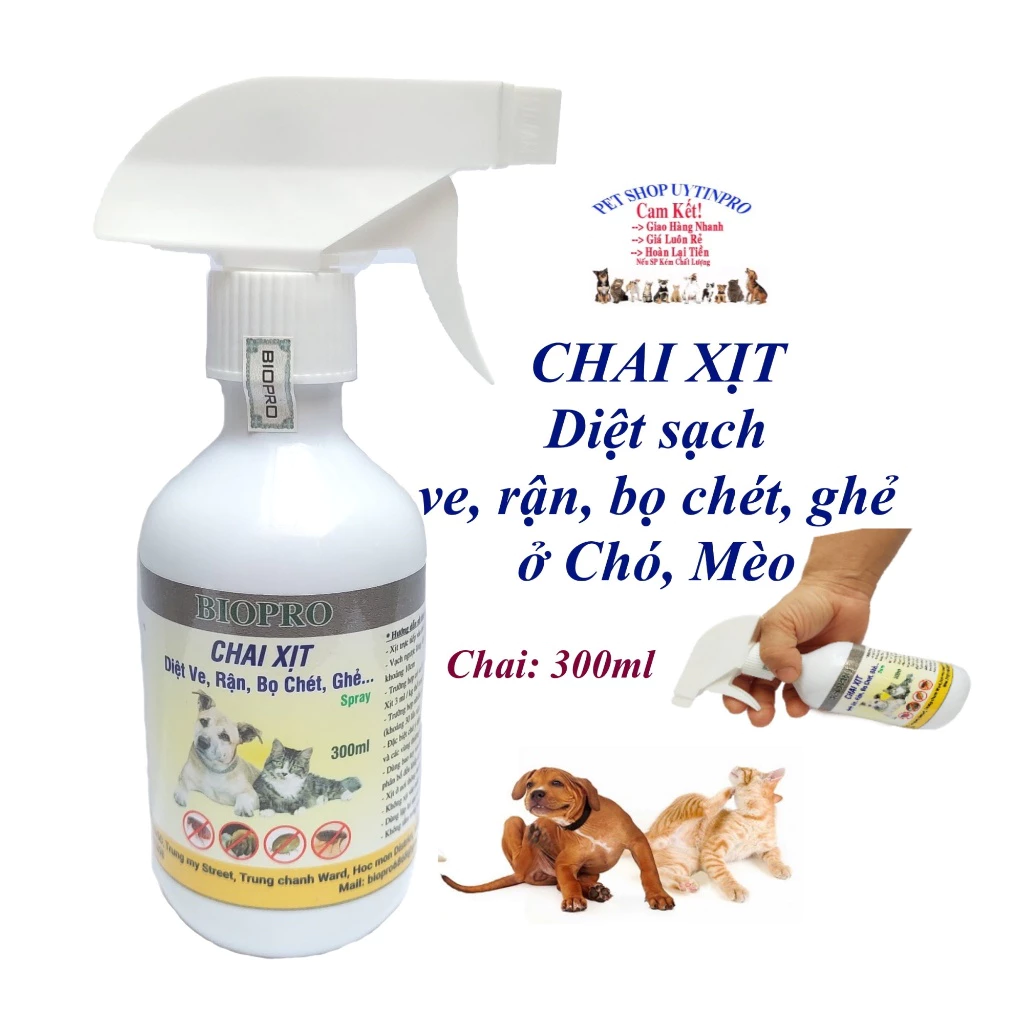 Chai xịt diệt sạch ve, rận, bọ chét cho Chó Mèo BioPro Chai 300ml Giúp diệt sạch và phòng ve, rận, bọ chét cho thú cưng