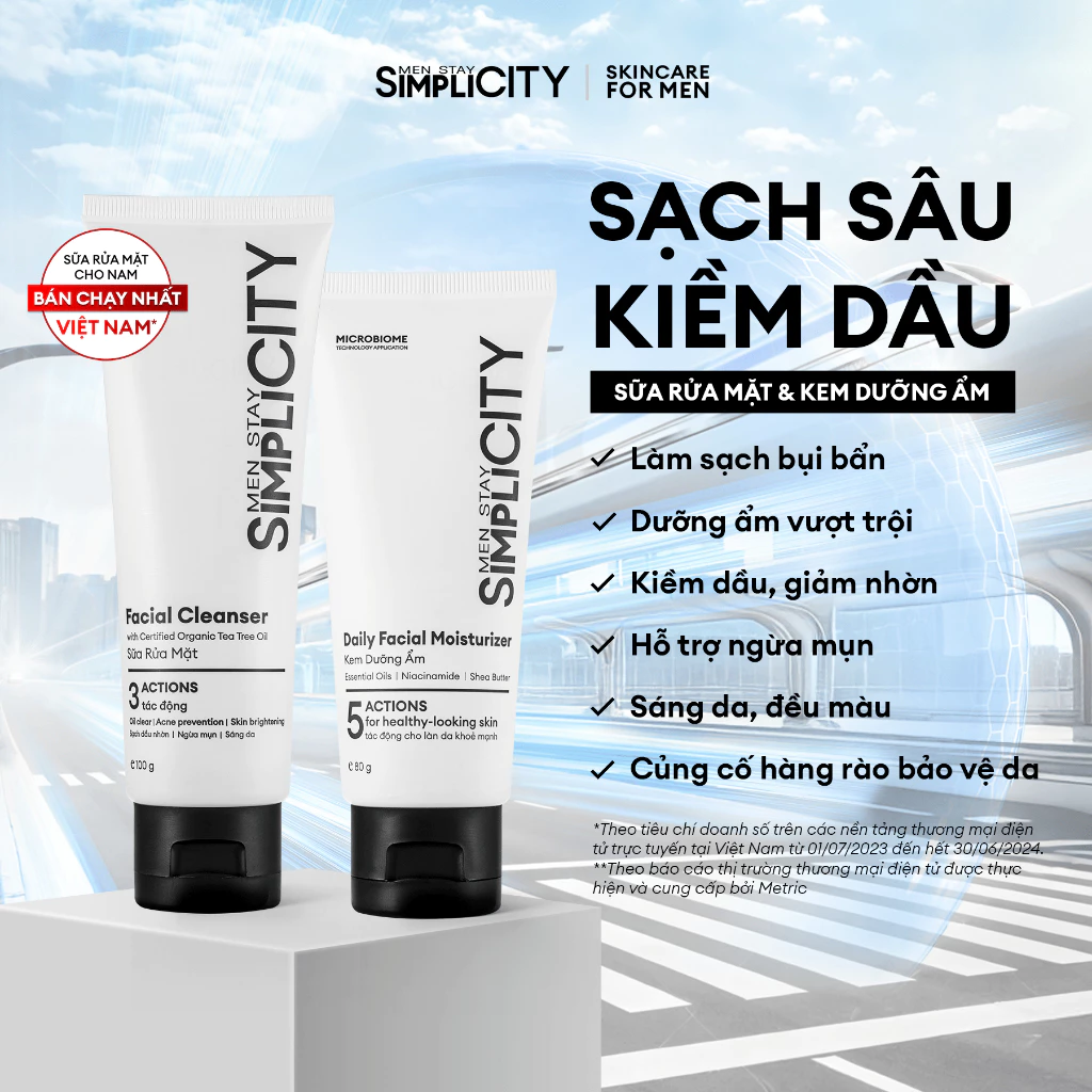 Combo chăm sóc da làm sạch bảo vệ toàn diện cho nam Men Stay Simplicity Starter Duo: Sữa rửa mặt x Kem dưỡng ẩm