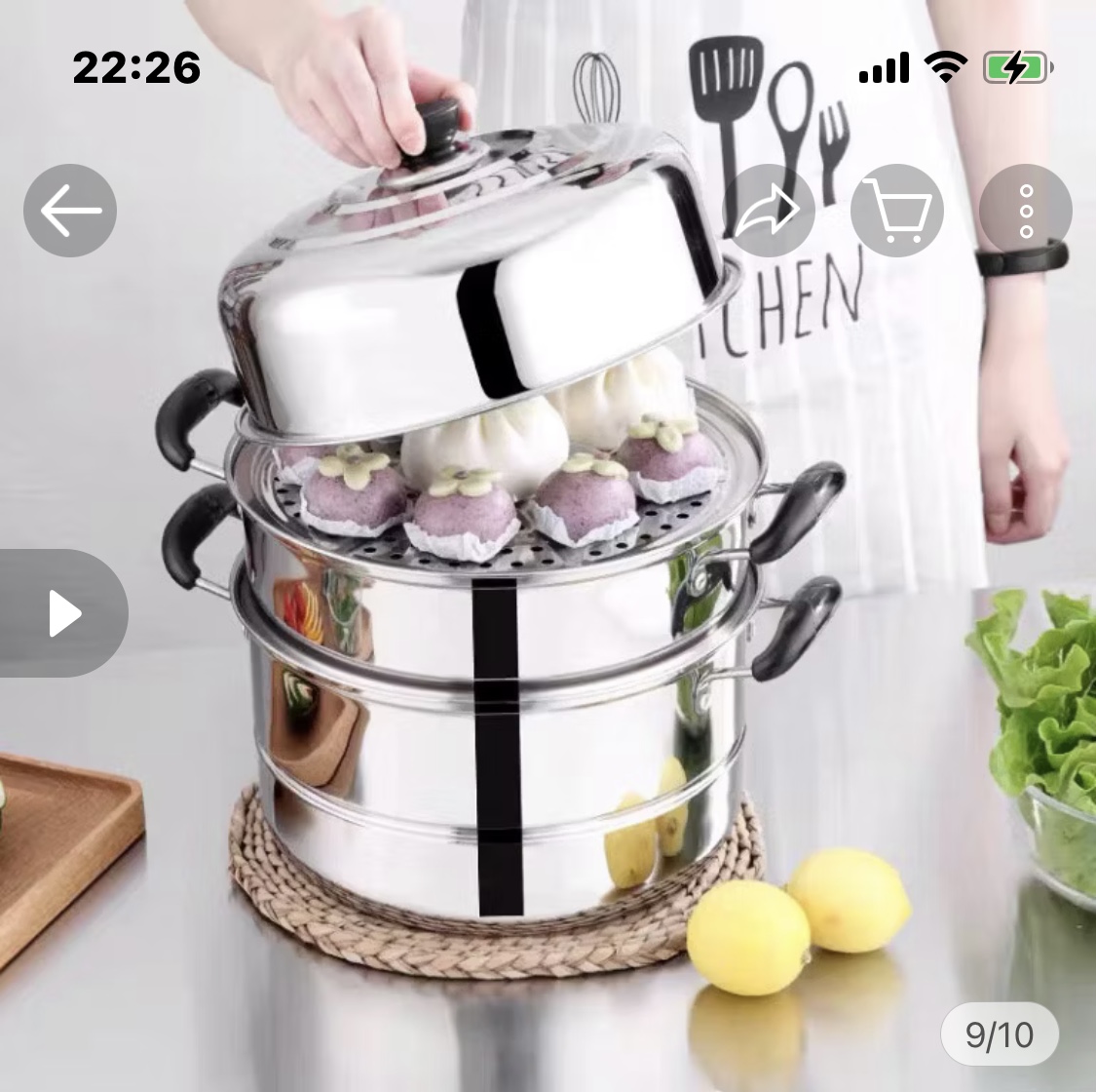 Nồi Hấp Inox 3 Tầng Siêu To Nồi Hấp Bánh Bao Bánh Flan Hấp Thức Ăn 28CM Dùng Cho Cả Bếp Từ Và Bếp Ga Tặng Kèm Xửng